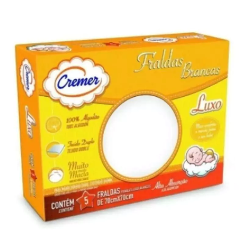 Contém: 05 fraldas brancas sem bainha.